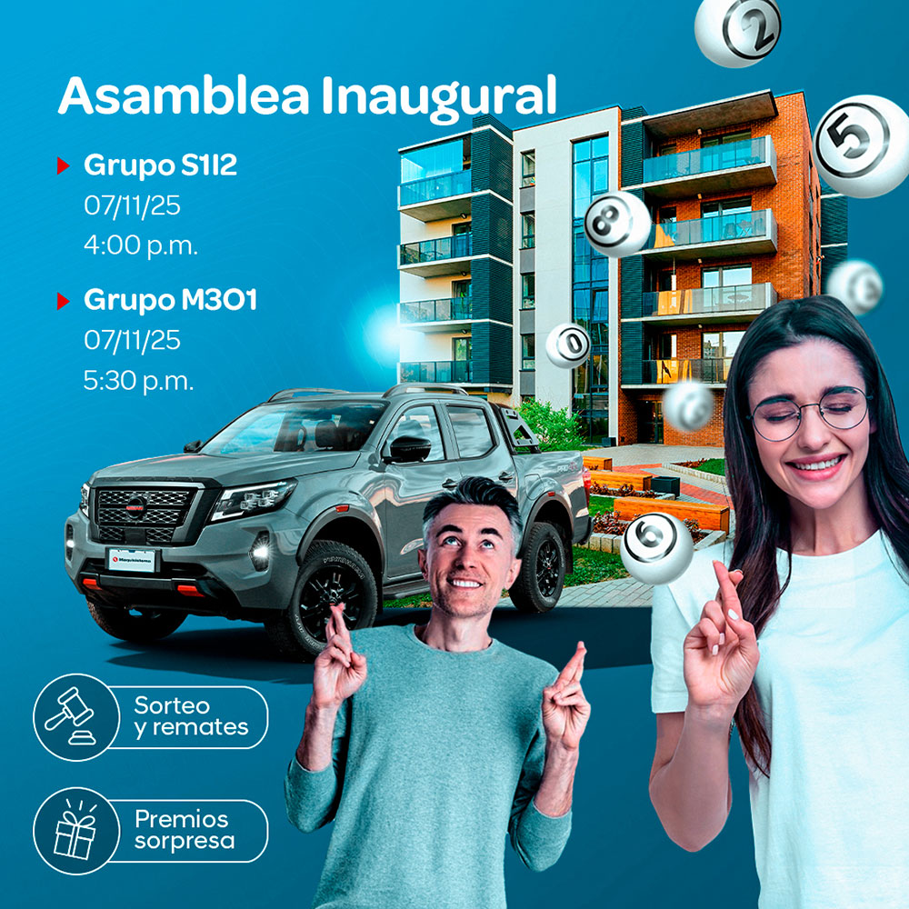 Asiste a tu asamblea inaugural y luego participa mensualmente de asambleas con sorteos y remates para obtener tu auto.